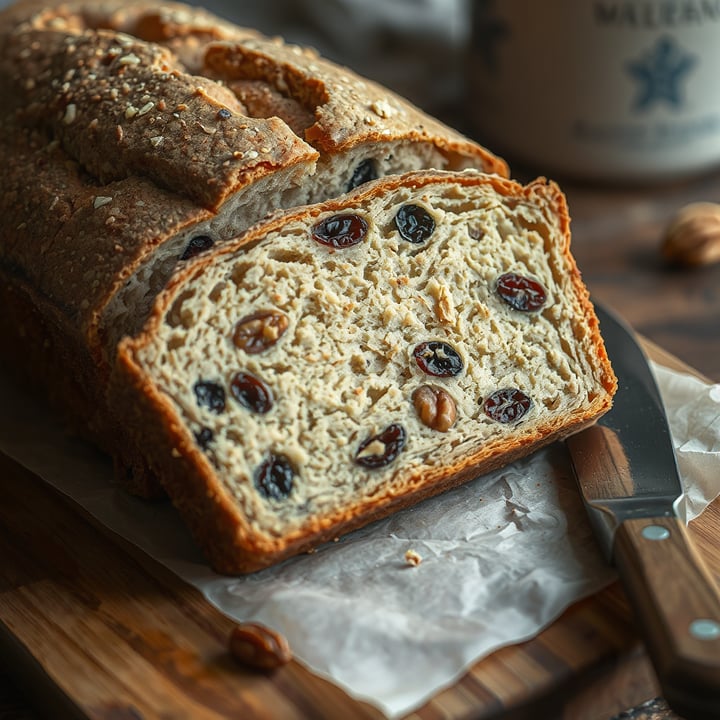 Budín integral con pasas de uva y nueces