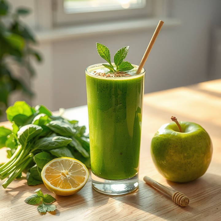 Bebida nutritiva que combina alcachofa con frutas y verduras, ideal para desayunos que cuiden el hígado.