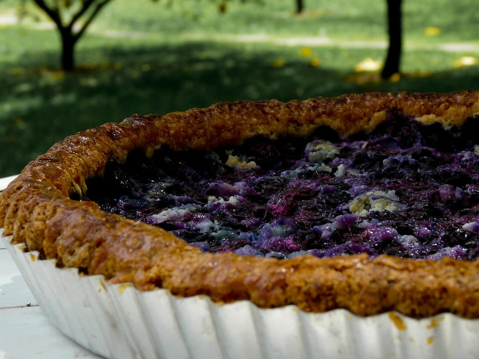 Desayuno cremoso y nutritivo con base de jugo de arándano, yogur y granola casera. Ideal para empezar el día con energía.