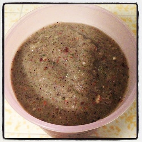 Licuado de banana, leche de almendras y 2 cucharadas de harina de chía — desayuno que sacia hasta el almuerzo.