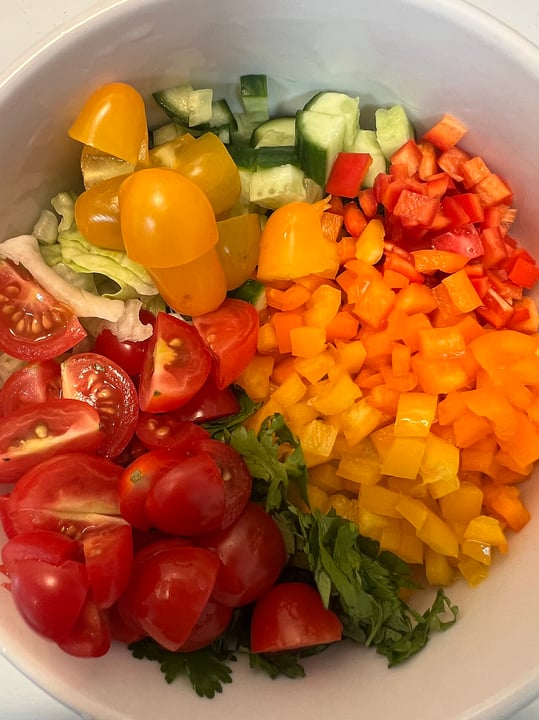 Verduras frescas salteadas rápidamente en aceite de coco, con ajo y jengibre. Acompañamiento versátil para almuerzo o cena.